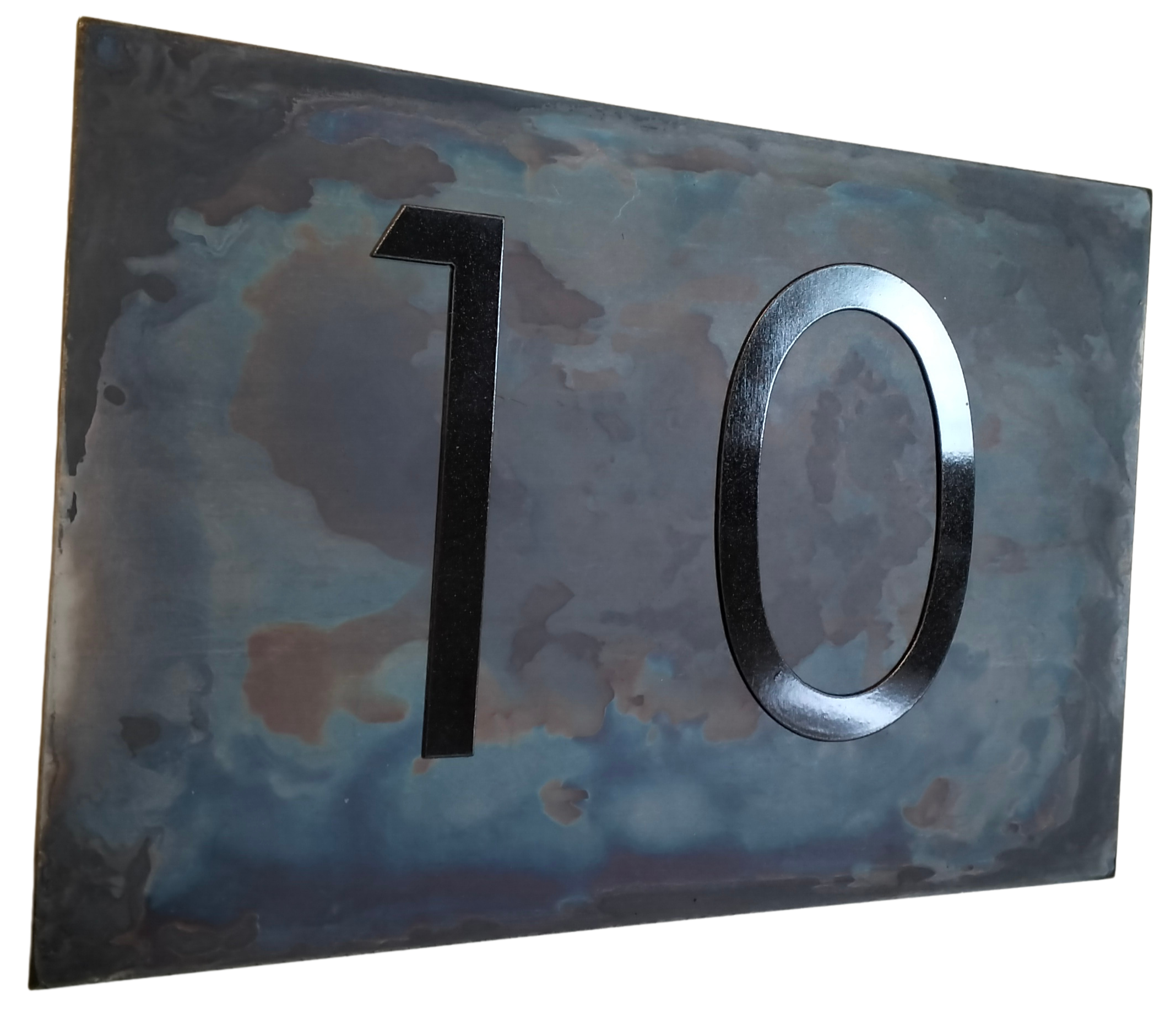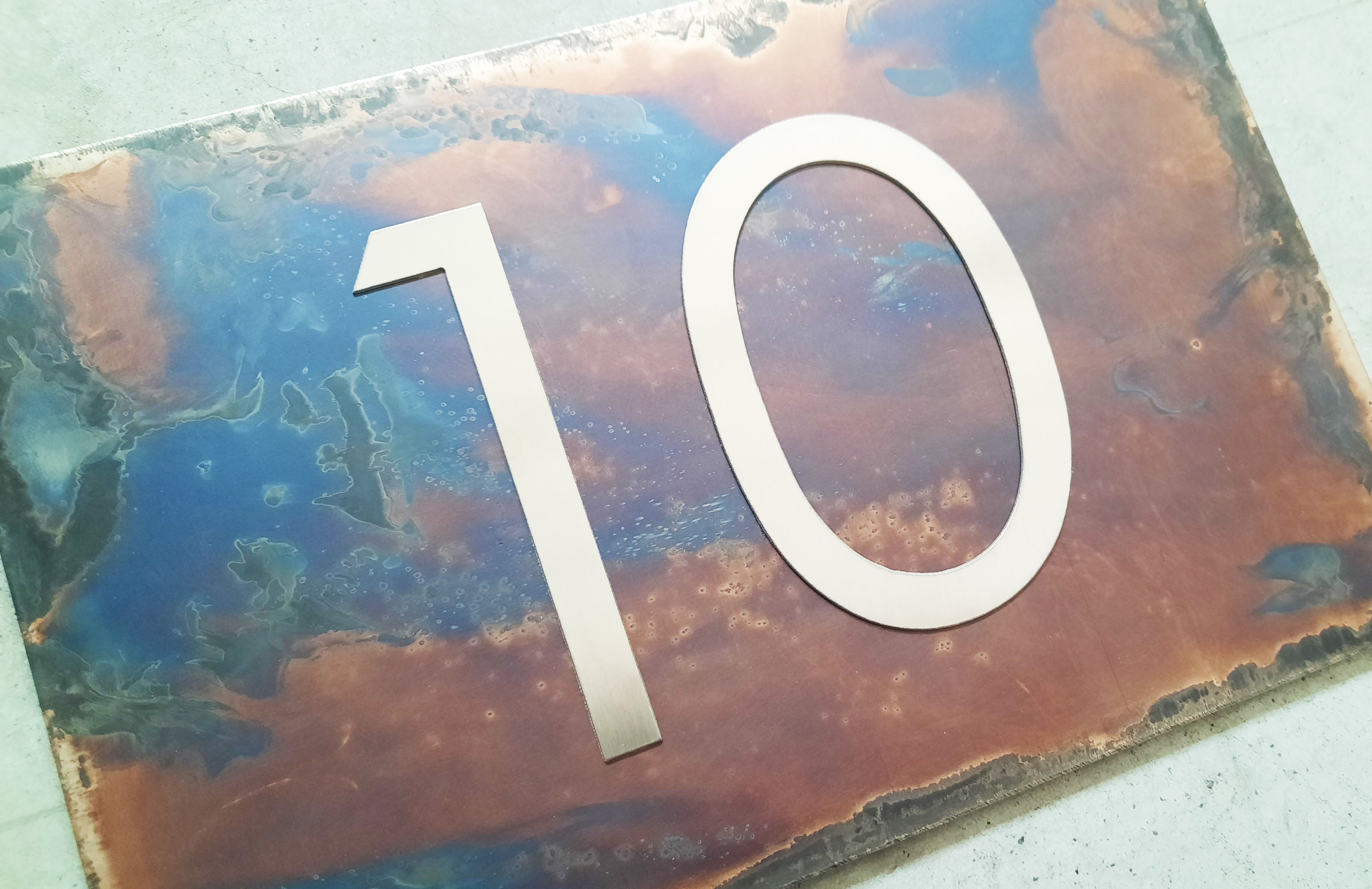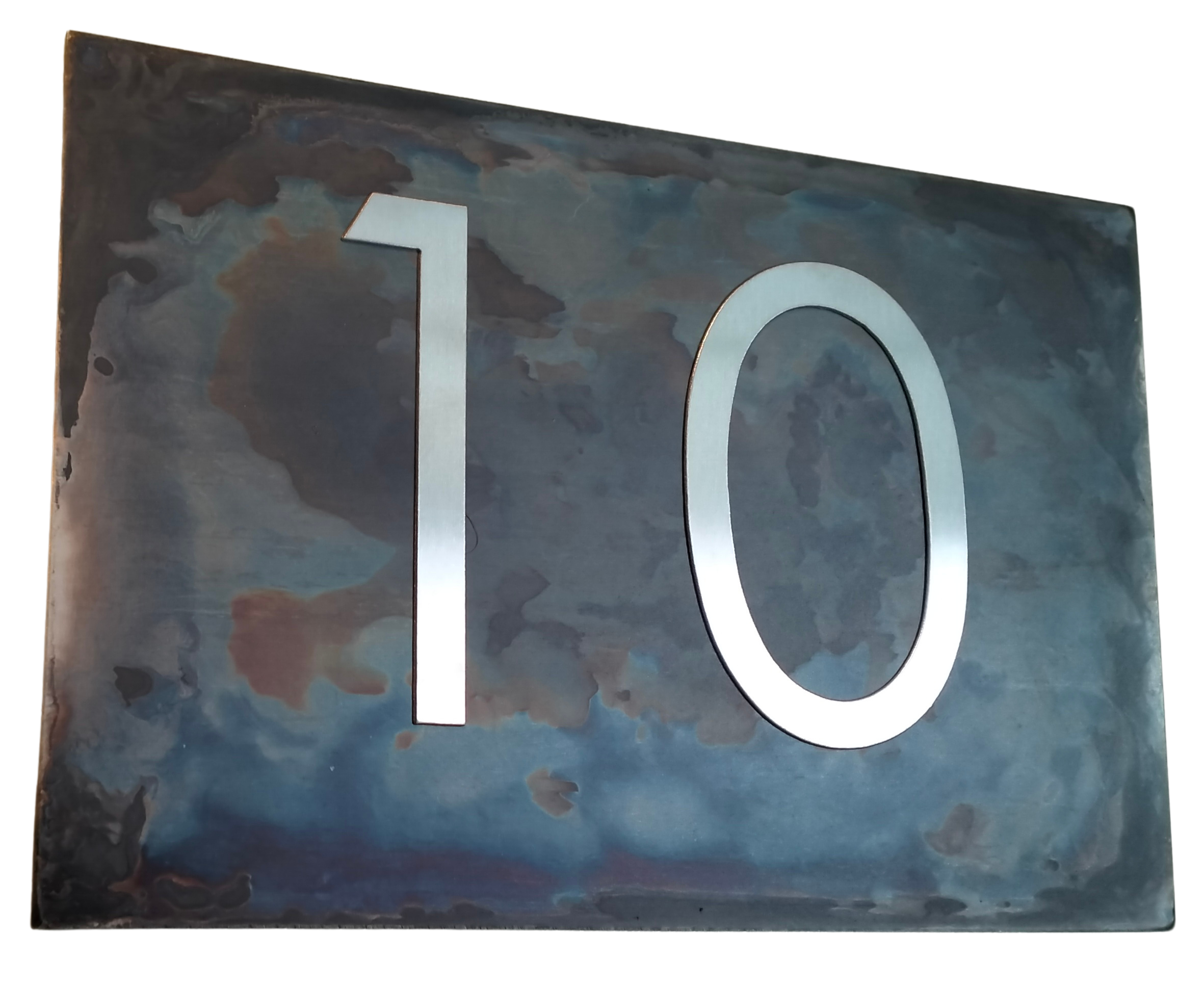 Le numéro de maison est fabriqué en acier inoxydable de haute qualité , découpé avec la technologie du jet d'eau et poli à la main .