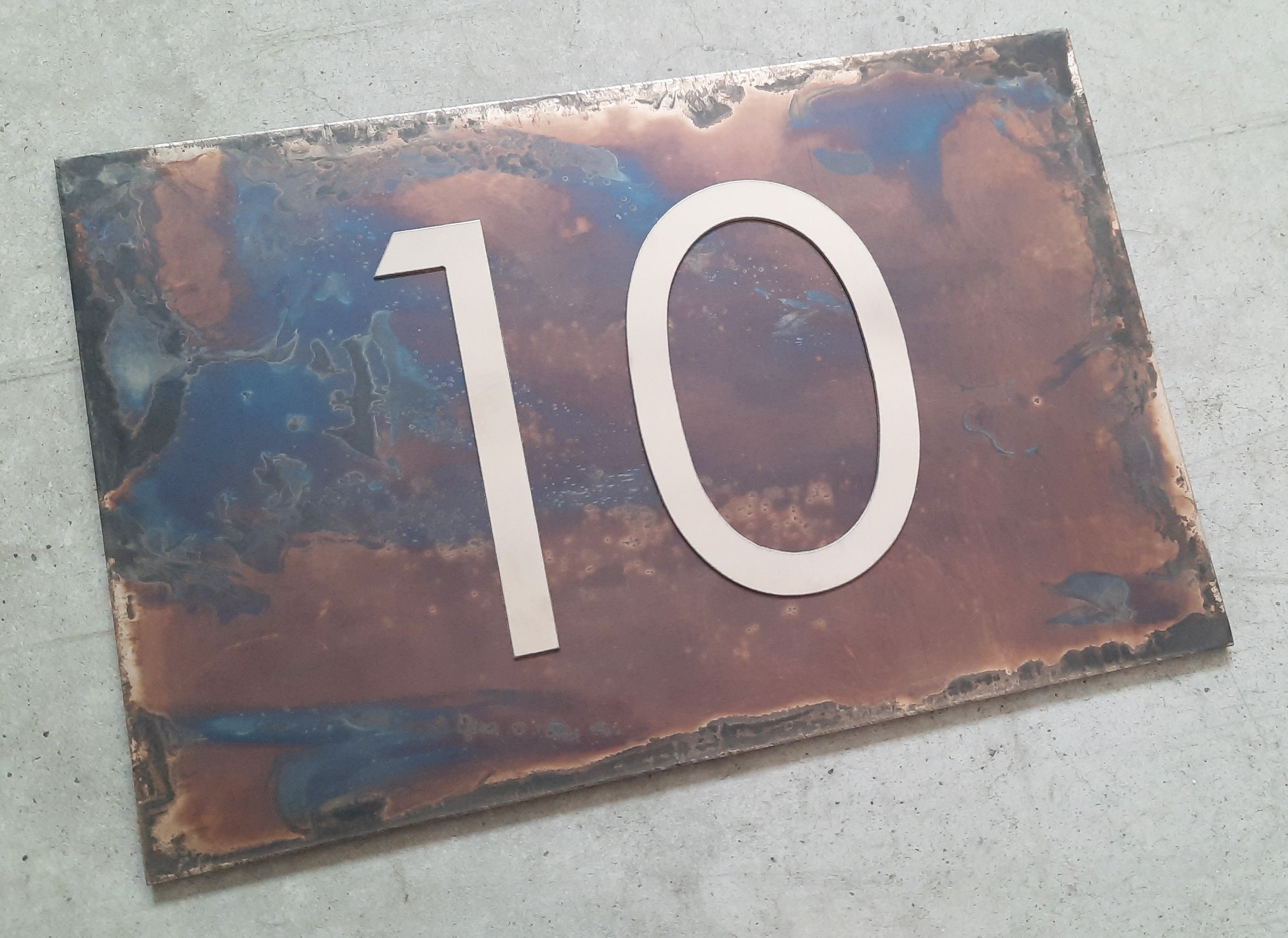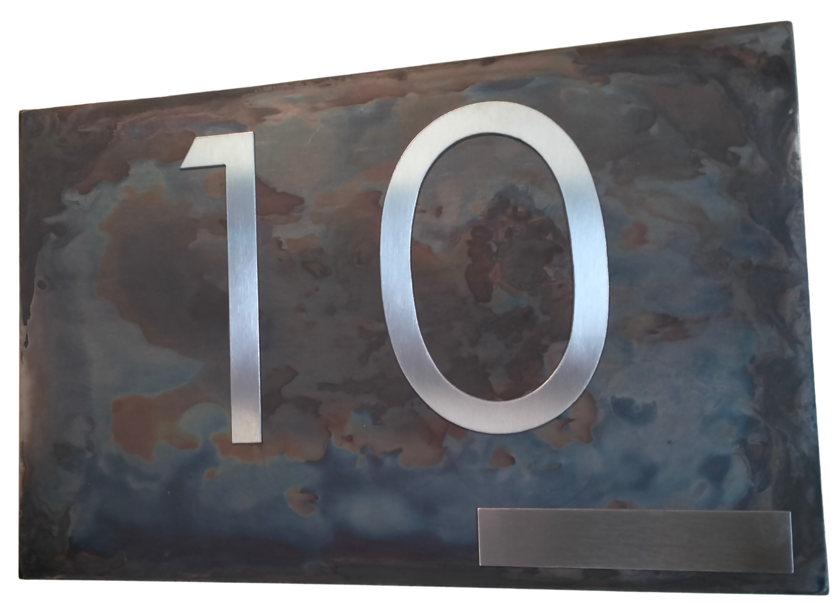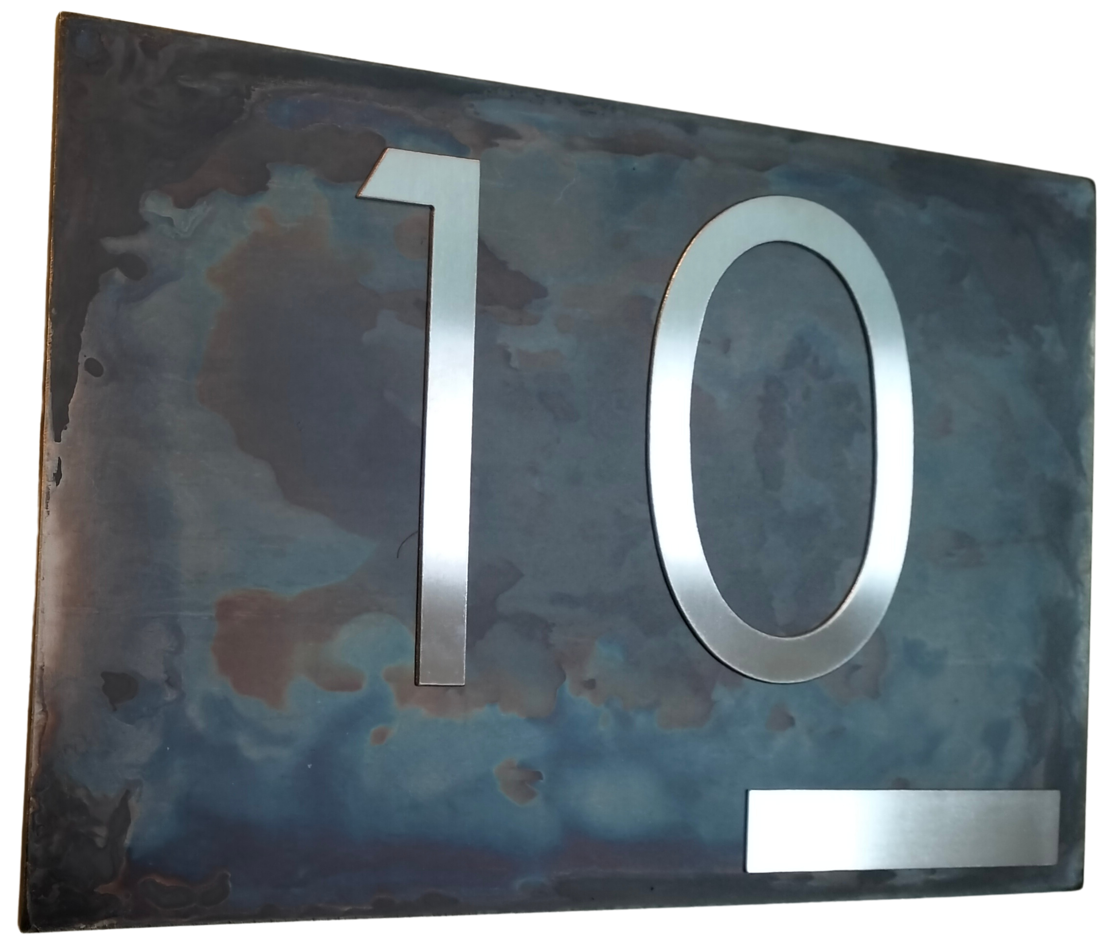 Le numéro de maison est fabriqué en acier inoxydable de haute qualité , découpé avec la technologie du jet d'eau et poli à la main .