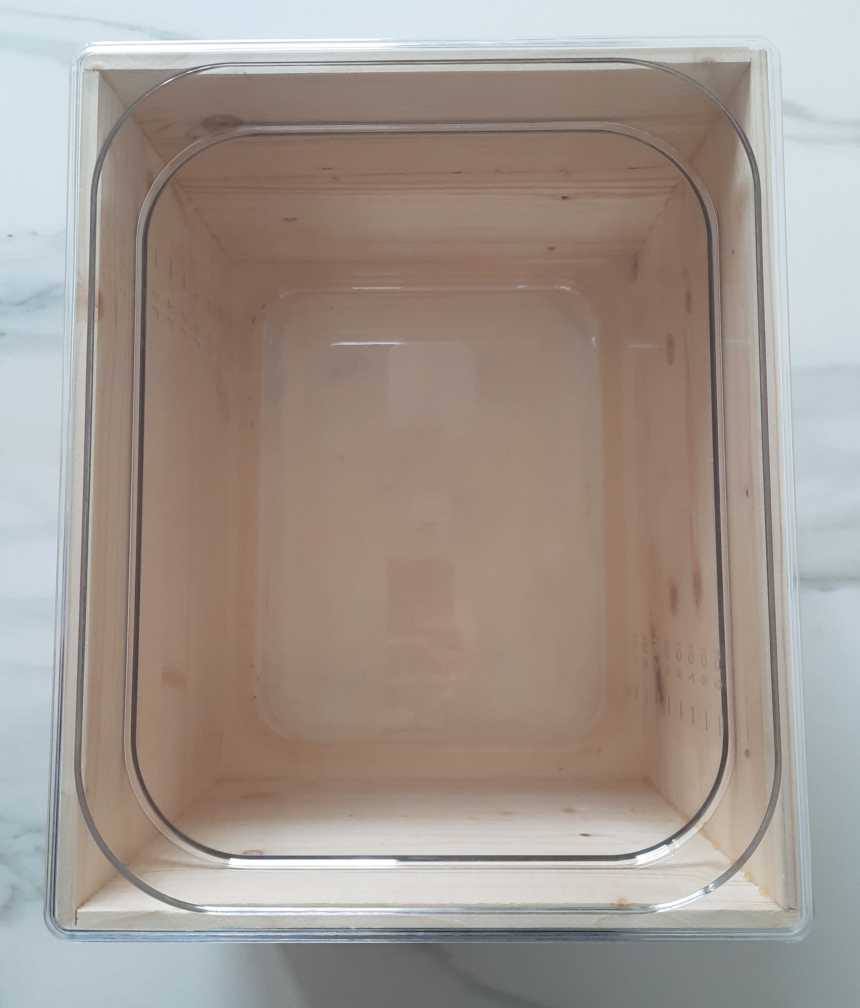 Il contenitore interno in plastica garantisce praticità, mentre l’estetica esterna in legno e vetro ne fa un vero oggetto d’arredo da esibire con orgoglio.