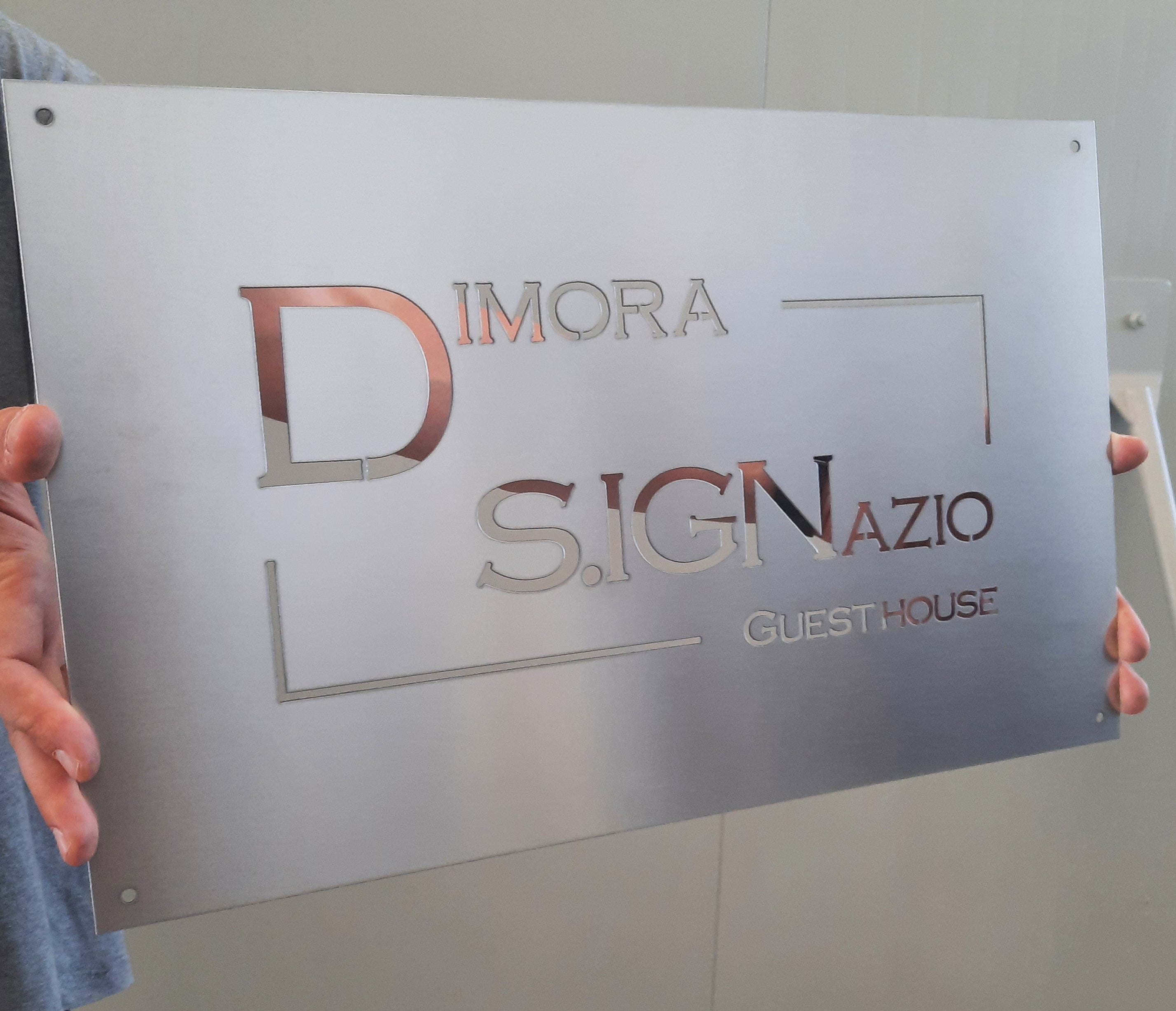 La targa in acciaio inox traforato ed inciso a laser è una scelta elegante e funzionale per personalizzare l'ingresso della tua attività, ufficio o negozio.