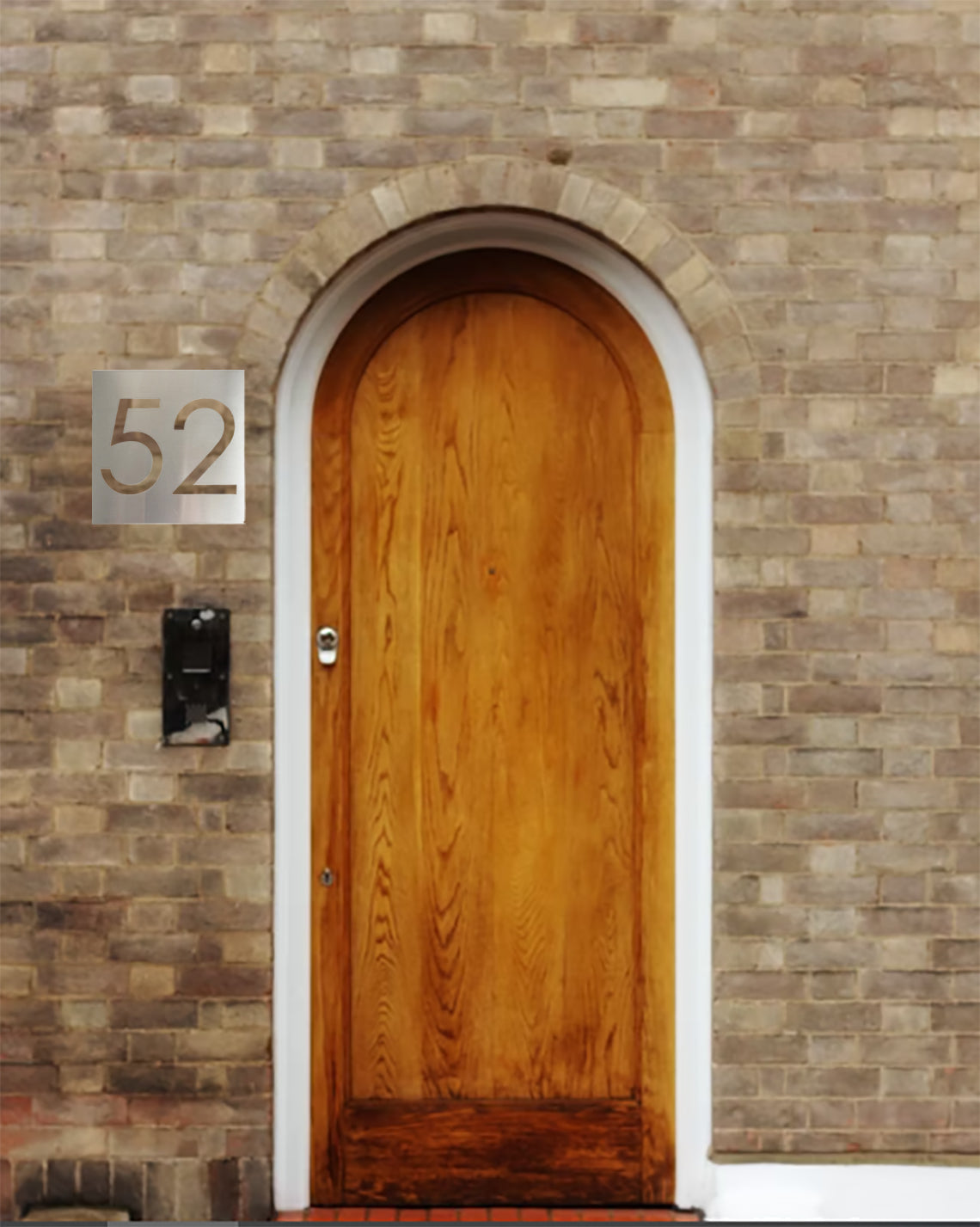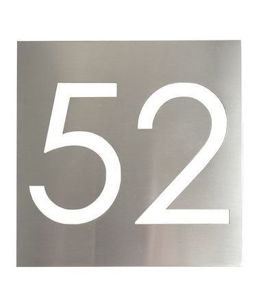 La forma cuadrada y el acabado satinado confieren al número de casa un aspecto moderno y discreto.