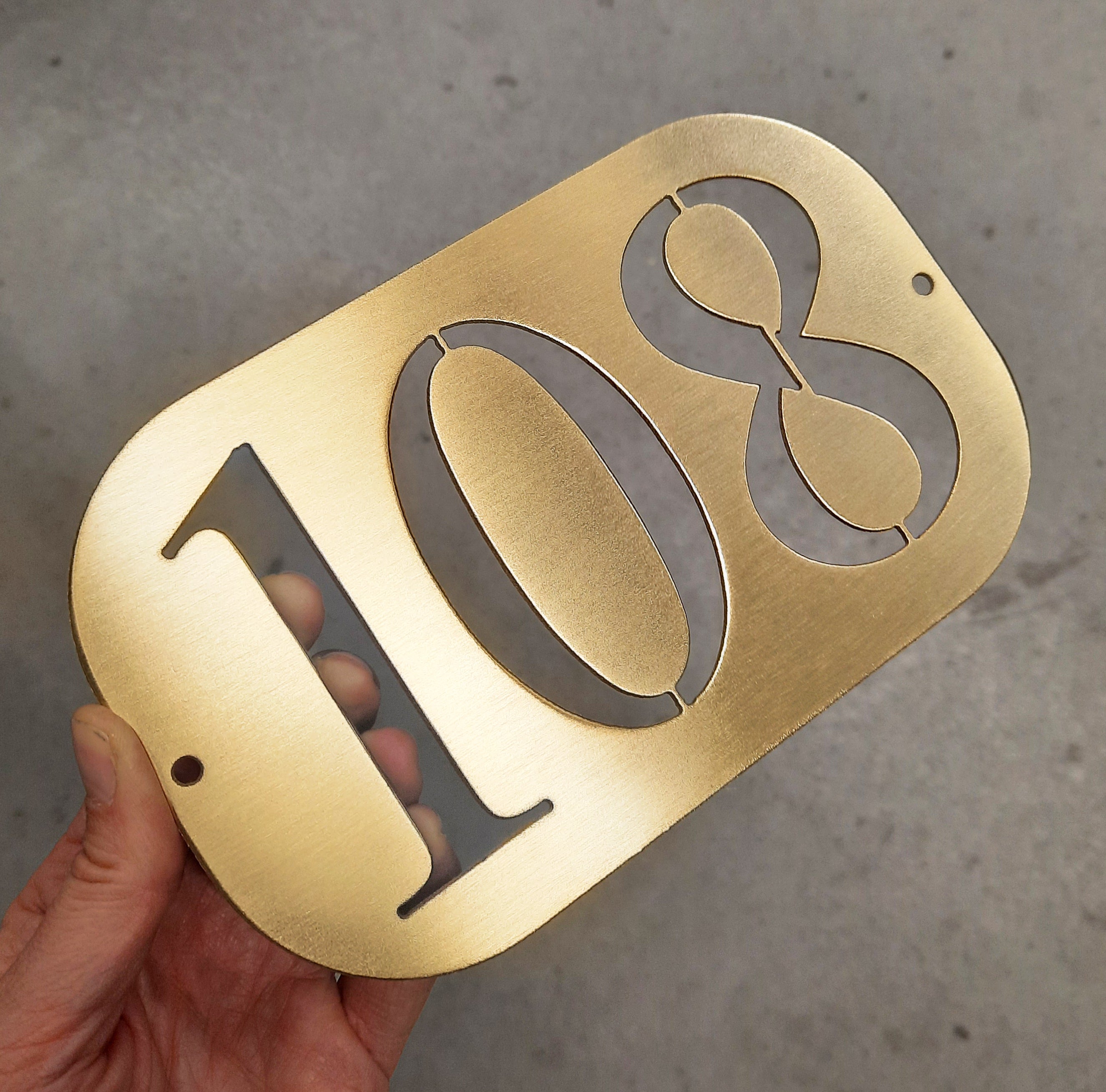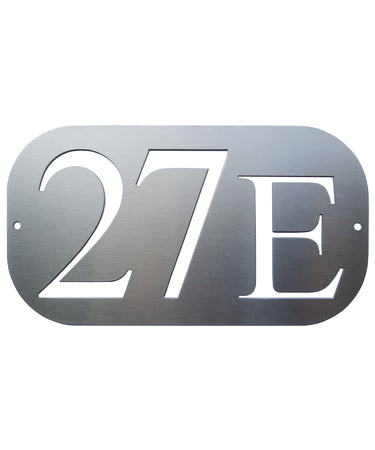 El número de casa está fabricado en acero inoxidable de alta calidad , cortado con tecnología de chorro de agua y pulido a mano .